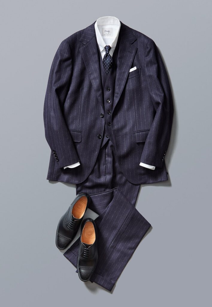 重要な会議やフォーマルな商談では、スーツと内羽根式のセミブローグが抜群の相性を発揮します。