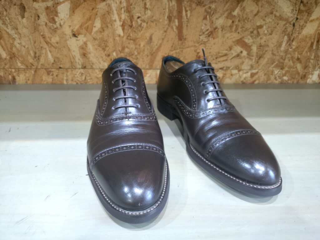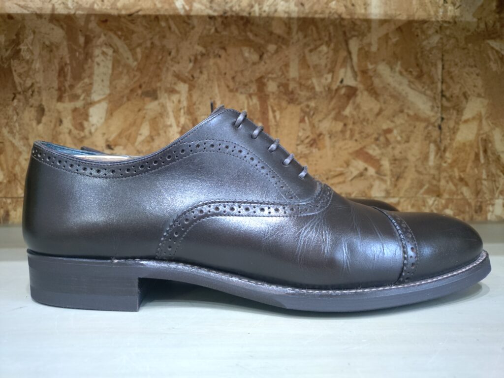 他店様でお作りになられた宮城興業のパターンオーダーシューズ、セミブローグのお修理をご依頼いただきました。今回は甲革のホツレの修理とオールソール交換です。修理のお写真を添えながら、セミブローグシューズの魅力をお伝えします。