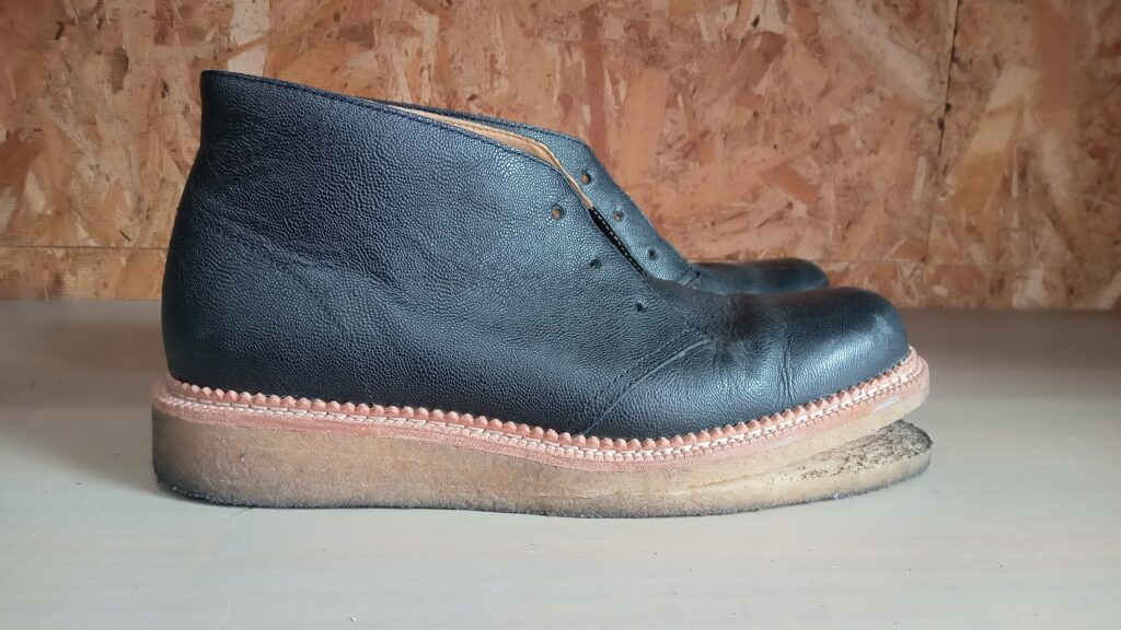 • オリジナルのクレープソールがボンドの経年劣化で硬化・・剥がれが進行。