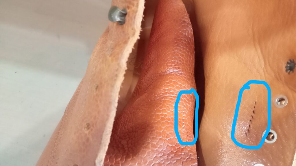 - タン止め部分のステッチが切れている