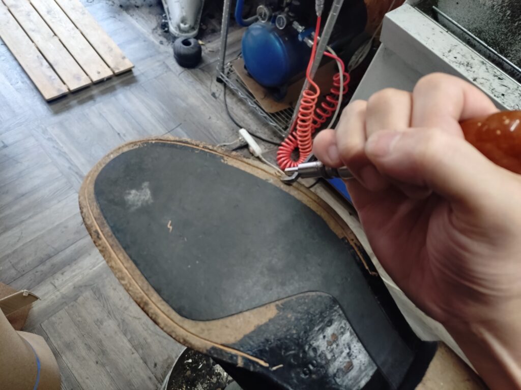 今回はミッドソールの出幅を利用して“出し縫い”で補強する方法を選択しました。