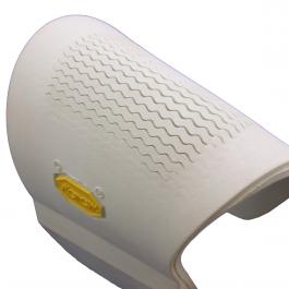 デッキシューズ向けのソールです。スペリータイプと言う波形の切り込みが入った設計で、排水性能が高く滑りにくいソールです。また波形の切り込みはソールの屈曲性の向上にも寄与し、今回のようなローファータイプの靴にもとても相性がいいです。