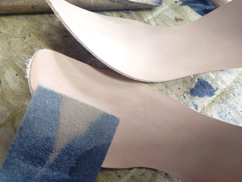 さらに、ヌメ革表面のつるっとした感触をサンディング加工(やすり掛け)して