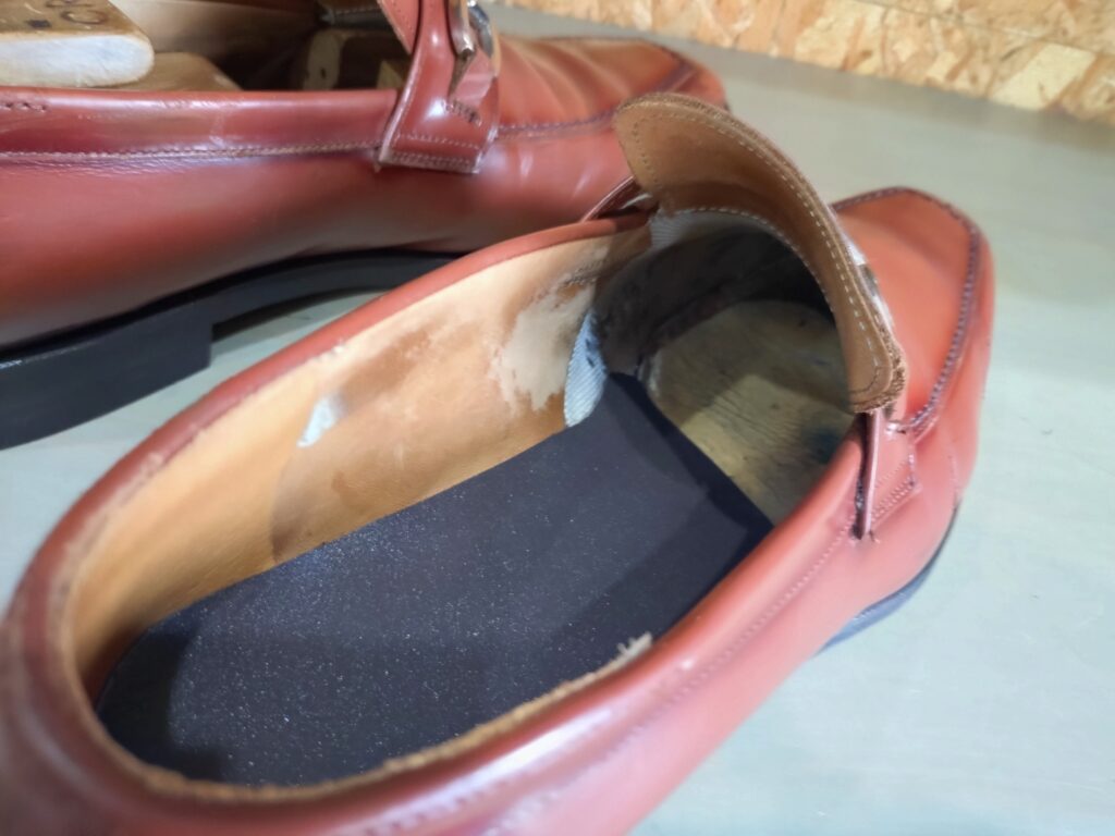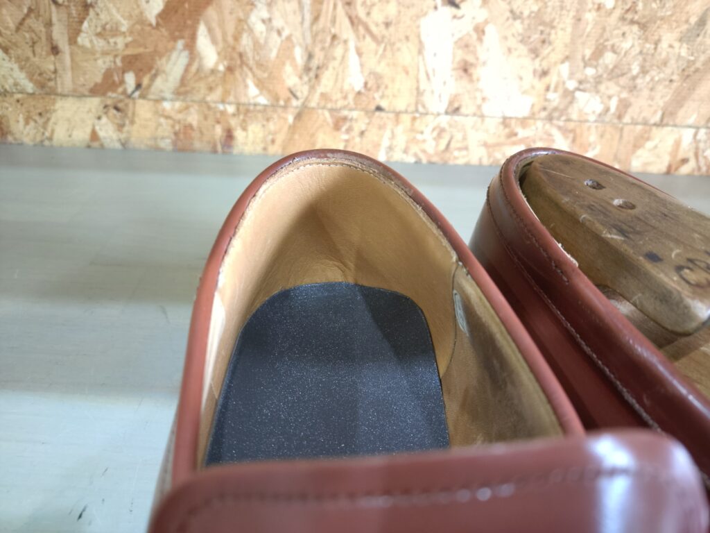 さらに、内部の中敷交換とカカト内側のスベリ革補強も同時に実施。