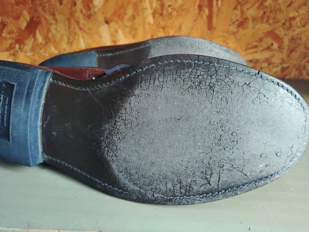 CRADLEさん、こんにちは。今回、中古で購入した靴のソールについて相談があります。販売サイトの画像ではわからなかったのですが、ソールに細かいスジがたくさん入っていて、今にも割れそうです。革の状態がいいので、しっかりと修理して履きたいと考えています。よろしくお願いいたします。