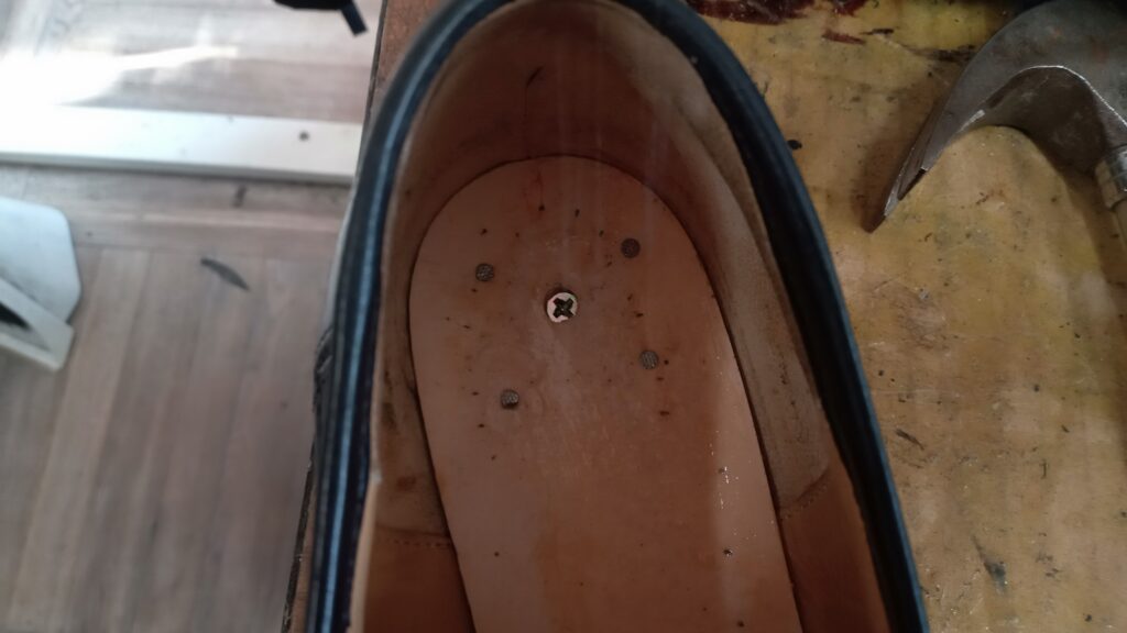 当店では、靴の内側からビスや釘でしっかりと固定する、目立たない・確実な修理をご提案しています。
