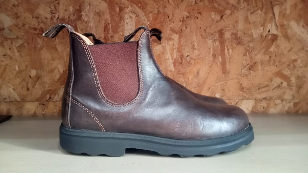 表革と裏革を縫い合わせたタイプで、柔らかく高級感があります。ドレスブーツなどに採用されやすい。 - 刺繍・ロゴ入りタイプ