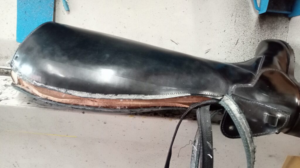 乗馬ブーツ 2023.09.132025.08.03 乗馬ブーツ CRADLE こちらのぺーじでは乗馬ブーツの修理を一覧にしています。乗馬ブーツ特有の修理についてはこちらに価格や納期を記載します。 ●オールソール交換 ●ファスナー交換 ●チャップスのゴム交換 ●筒の幅だし ●甲革の加工 内容価格納期チャップスのゴム交換3300円~約1週間筒の幅だし 片足2200円約1週間