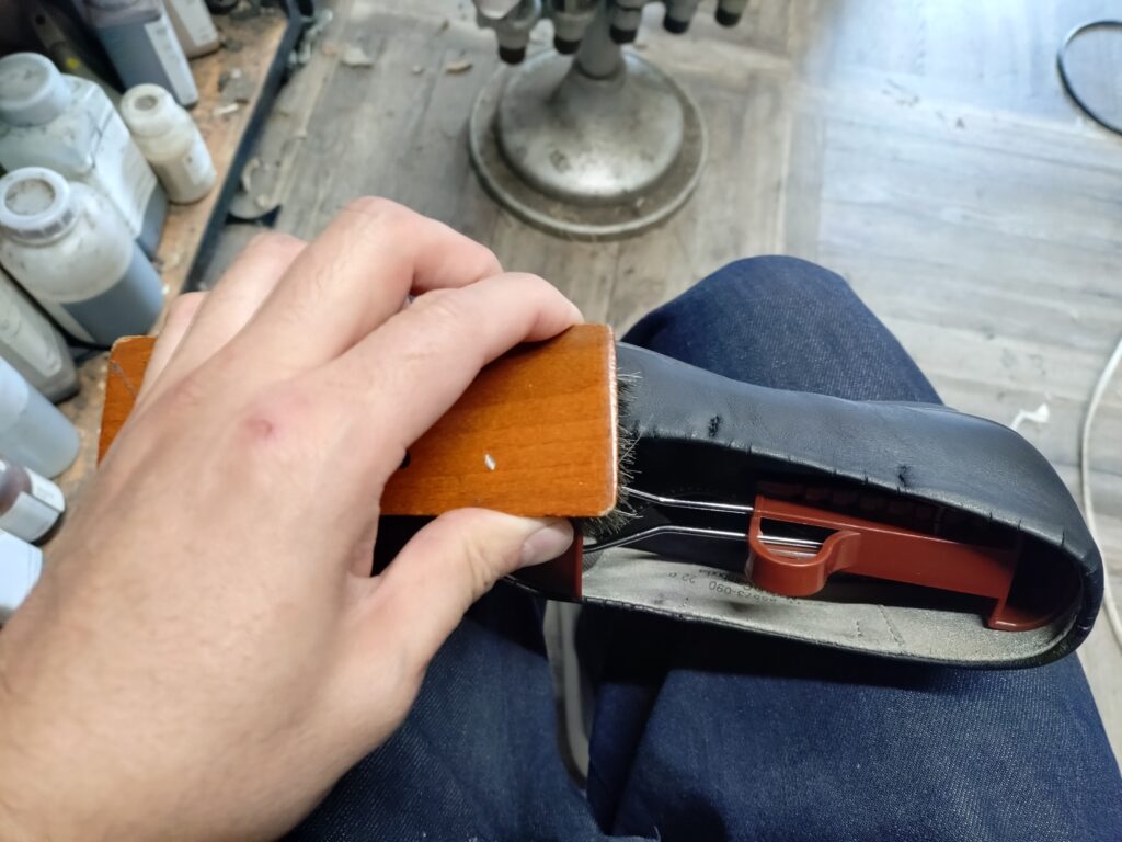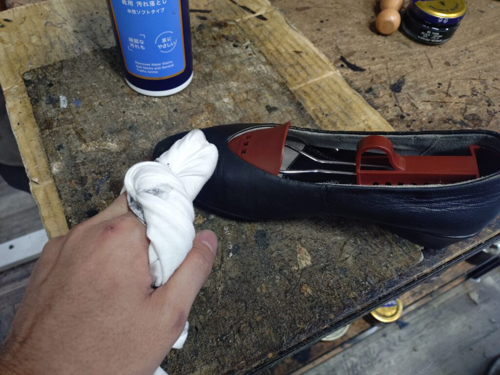 これにより、古いクリームや汗・汚れを除去し、革がリフレッシュされます。