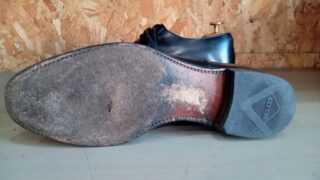 娘様用のジャズダンスシューズを、お母さまがお持ち込みくださいました。ありがとうございます。販売サイトにはステージ用と記載されていて、お値段も同ブランド内で割と高価なモデルでした。靴底は全て革でできており、ジャズダンサーさんの愛用品紹介のVT...