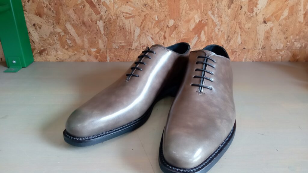 革の継ぎ目がないため、シワや傷のない高品質な一枚革が必要であり、さらに立体的に靴を成形する高度な技術も求められます。まさに“誤魔化しが効かない”靴です。