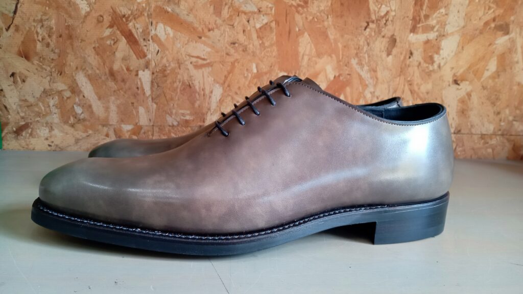 この一枚革構造により、素材の質感・職人の技術・木型の美しさが最も際立つ革靴とされています。